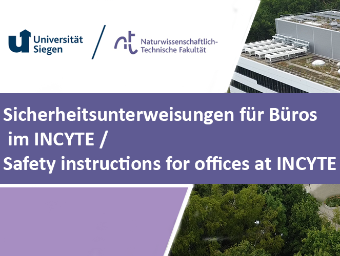 Um in Büros an der Universität Siegen im INCYTE arbeiten zu dürfen, ist der erfolgreiche Abschluss einer umfassenden Sicherheitsunterweisung verpflichtend. Dieser Kurs vereint sowohl INCYTE spezifische Sicherheitsinhalte als auch allgemeine, universitätsweit vorgeschriebene Unterweisungen. Ziel ist es, ein sicheres, verantwortungsbewusstes und regelkonformes Verhalten im universitären Arbeitsumfeld zu gewährleisten.